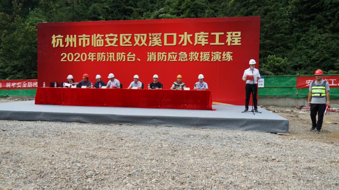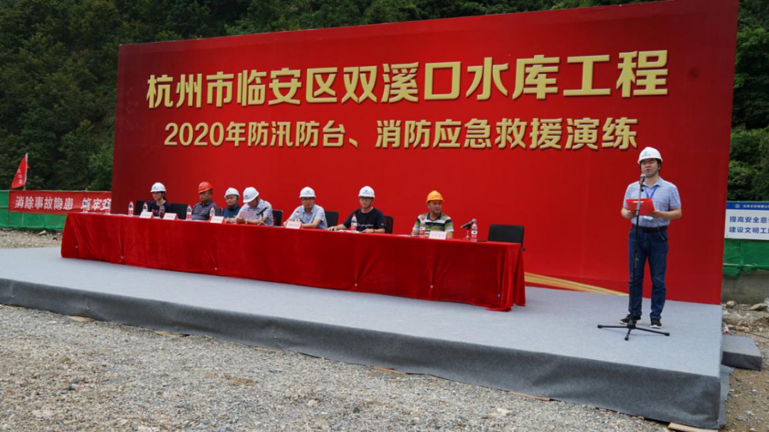 为进一步增强杭州市临安区双溪口水库工程全体人员防汛防台和消防安全意识,强化应急预案保障措施的落实,提高各参建单位应对突发性洪水和火灾等事件的应急能力,确保汛期施工人员生命财产安全,减少火灾事故灾害损失。6月12日上午,双溪口水库工程法人单位杭州鲁润水电开发有限公司组织各参建单位,开展防汛防台和消防应急救援演练活动。