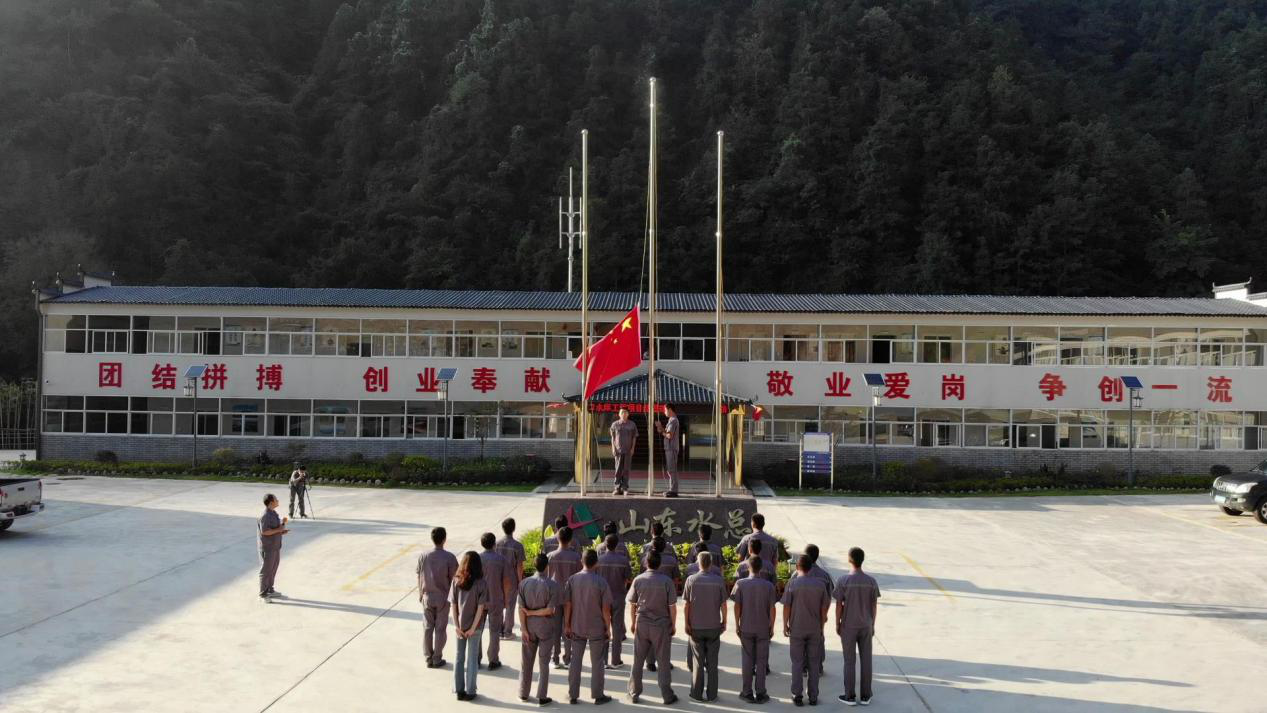 红旗如画,展现光辉历程;岁月如诗,颂扬丰功伟绩。为庆祝我们伟大的祖国72岁华诞,讴歌伟大的中国共产党百年的辉煌。10月1日上午,球探网页版第六分公司于杭州市临安区双溪口水库工程项目部举行国庆节升旗仪式,向祖国献礼。