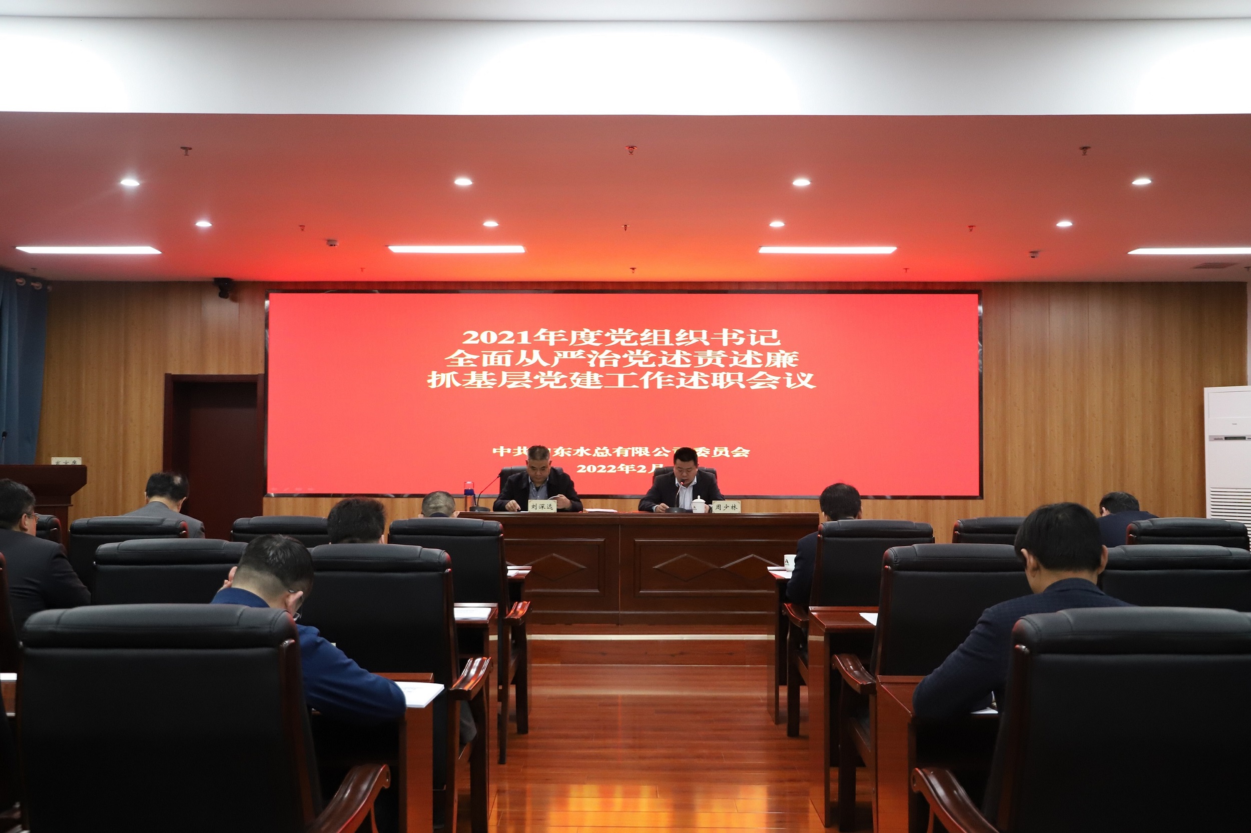 2月24日,公司党委在济南总部召开2021年度党组织书记全面从严治党述责述廉和抓基层党建工作述职评议会议。公司党委副书记、工会主席周少林主持会议,党委书记、董事长刘深远作点评讲话。公司领导班子成员、权属单位党支部书记和党员代表共30余人参加会议。
