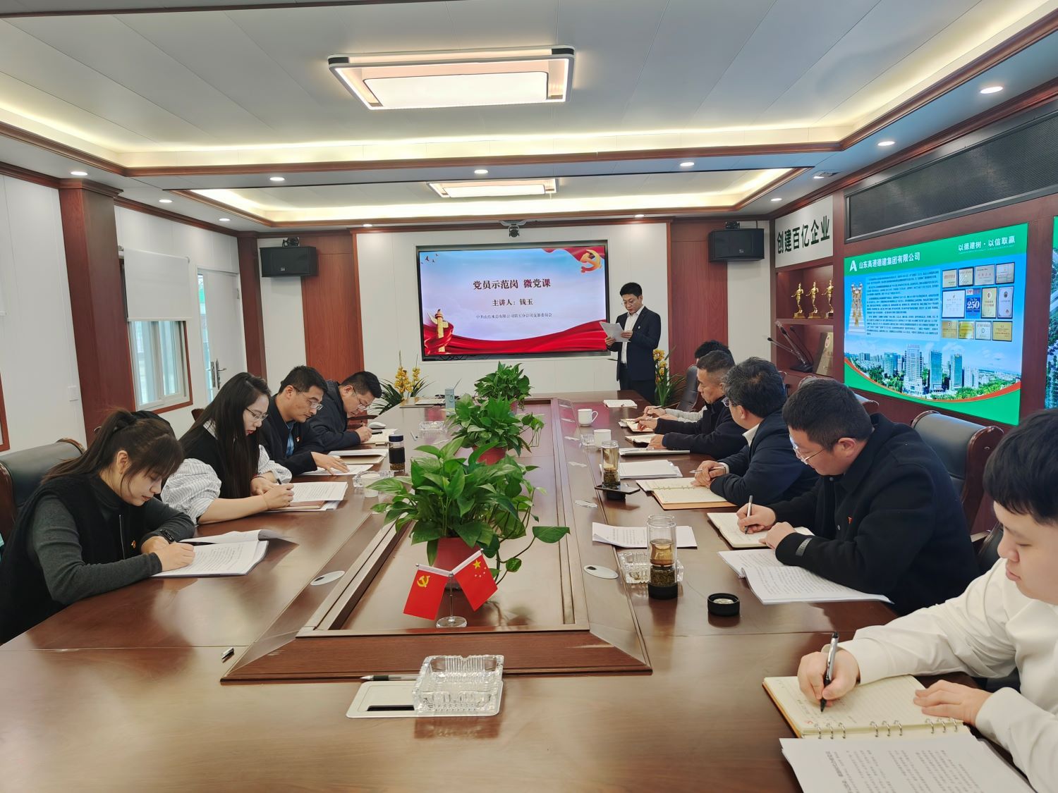 最后,第五分公司党支部开展“示范带学活动微党课”第一期,党员干部开展公开承诺践诺、争当先锋表率,承诺让党旗在施工一线高高飘扬,深化了主题党日教育成果。
